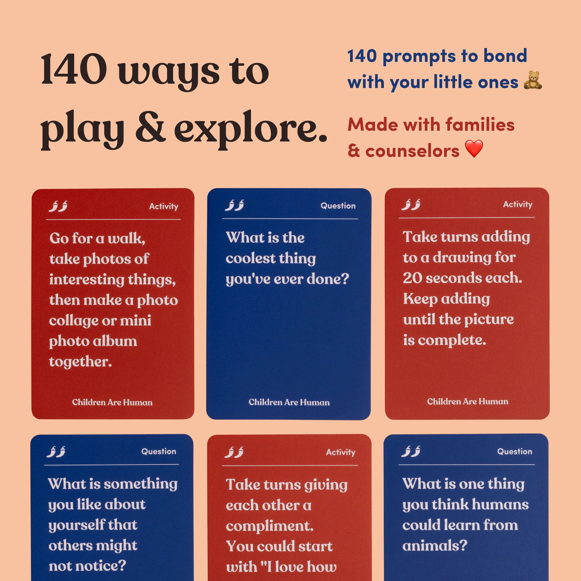 A game that helps you bond with kids in elementary school through fun conversations & creative experiences. (Grades 2-5 | Ages 7-10+)